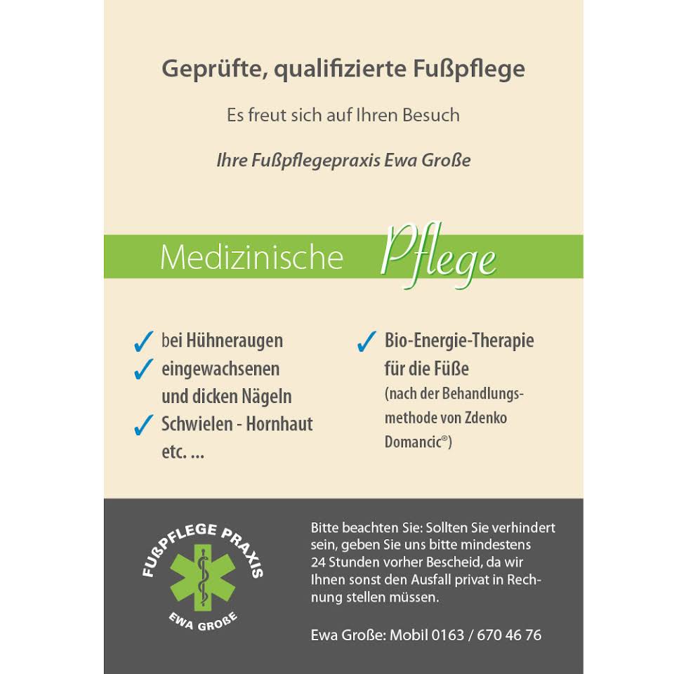 Geprüfte, qualifizierte Fußpflege. Es freut sich auf Ihren Besuch Ihre Fußpflegepraxis Ewa Große